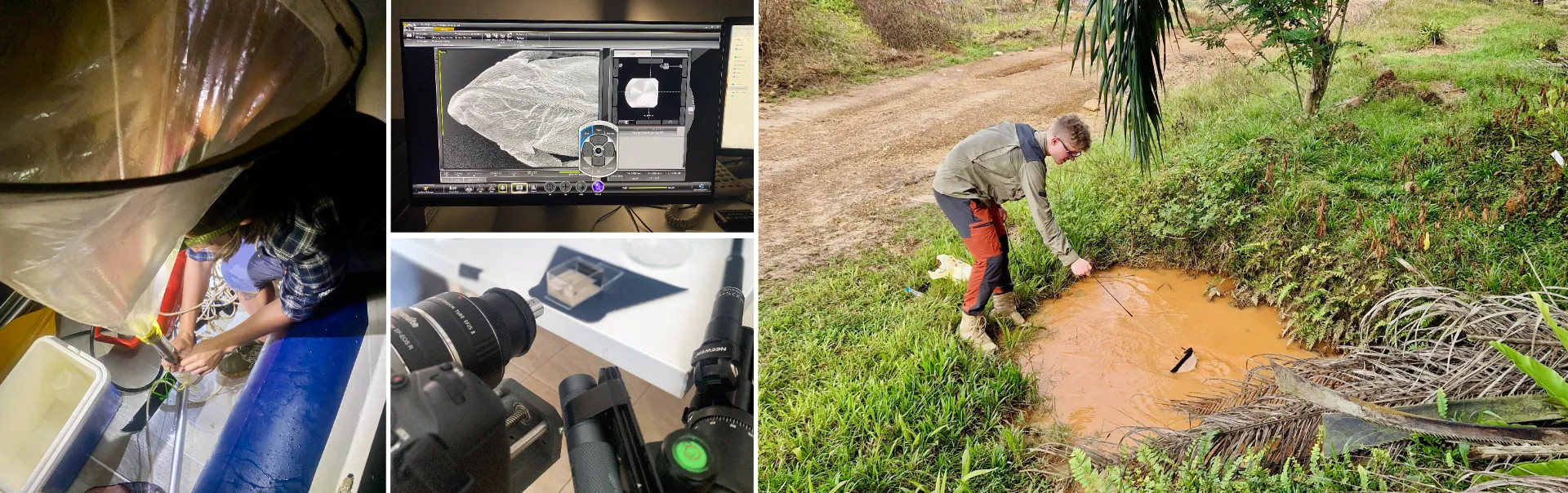 Zakonzervovaný nebo živý vzorek převedeme na plošku, která poskytne optimální prostor k jeho prohlédnutí. Existuje hned několik možností, pokud se uchýlíme k užití standardních optických přístrojů. Rozměrnější objekty lze nejlépe a dostupně zkoumat s binokulární lupou, která poskytuje ucelený obrázek o celkovém tvaru i barvě (při horním násvitu) pozorovaného předmětu. Ta umožňuje snadné manipulace se vzorky formou preparací, jimž se při determinaci často nevyhneme. U mě našla binolupa uplatnění ponejvíc při zásazích, jako jsou obvykle přesuny požadovaného subjektu při třídění podle konkrétně zvoleného kritéria (velikost, infekce). Nejdokonalejší binolupy mohou v některých situacích plně nahradit složitější mikroskopy, dokud se velikost konkrétního objektu pohybuje ještě v rozmezí nebo nevzdáleně pod hranicí rozlišovací schopností lidského oka. Jsou tak užitečnými nástroji nejen pro zběžný náhled mezi nasbíraný materiál, ale rovněž solidními prostředky pro určování velké řady drobných zástupců. Mnoho obdobných úkonů lze provést s inverzními mikroskopy, které též neobrací projektovaný (skutečný) obraz, čímž se se zobrazovanými objekty manévruje pohodlněji. Navíc u obou voleb ani přiložený vysokostěnný plastik (kultivační zkumavky a destičky), tak Petriho misky nikterak nezaclání kompletně osazenému karuselu.